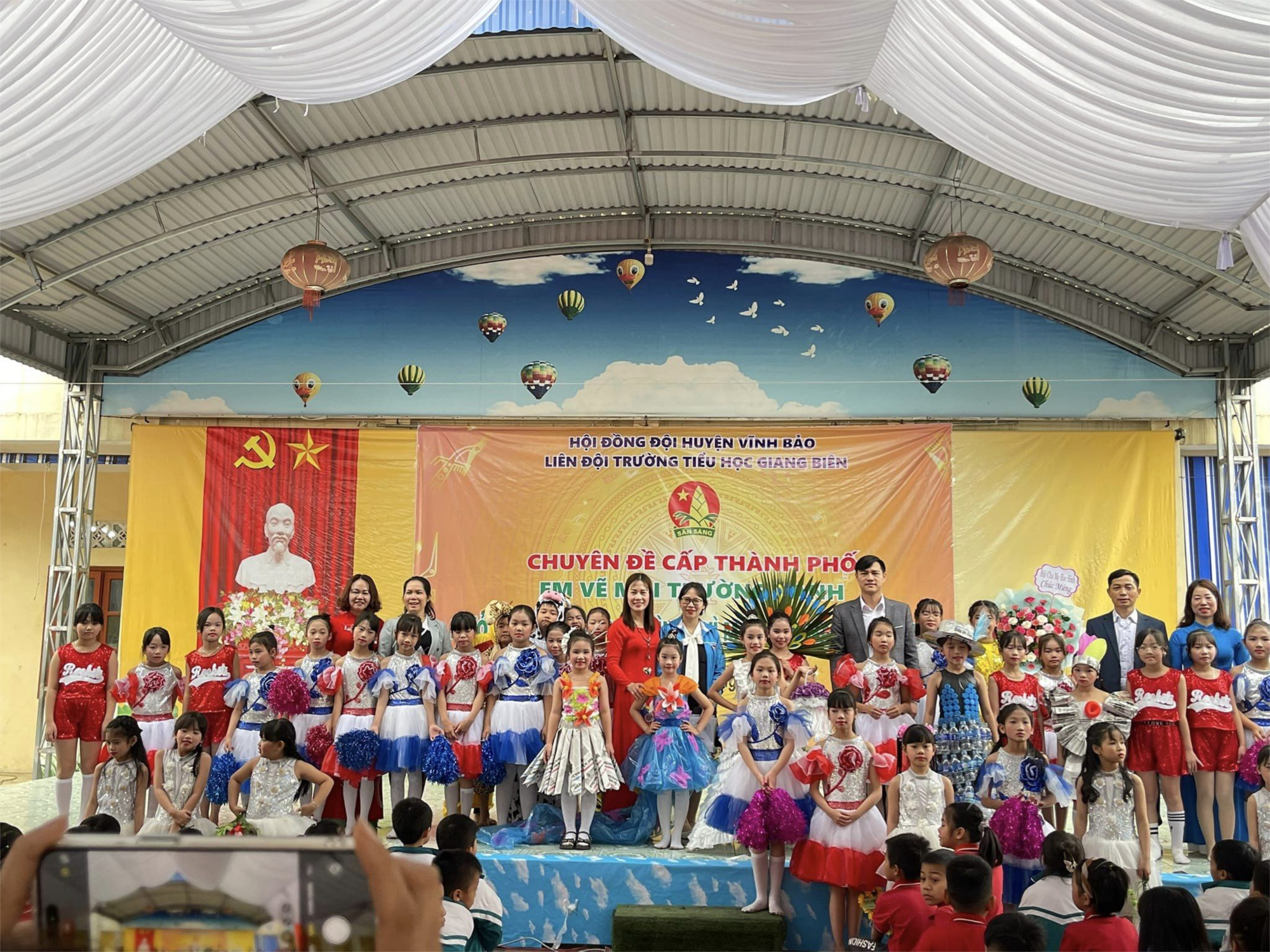 Chuyên đề Em vẽ môi trường xanh của Liên đội trường tiểu học Giang Biên đã thành công tốt đẹp. Qua chuyên đề giúp các em học sinh hiểu được tác hại của chất thải do con người gây ra từ đó các em ý thức giữ gìn bảo vệ môi trường. Để có được sân chơi thay mặt các em học sinh xin chân thành cảm ơn Hội đồng Đội huyện Vĩnh Bảo, BGH nhà trường, Hội cha mẹ phụ huynh học sinh, công ty may Anh Tuấn, Công ty nước Bá Ngọc, Bác Cao Trí Cuối đã ủng hộ cho các em có được sân chơi ngày hôm nay.