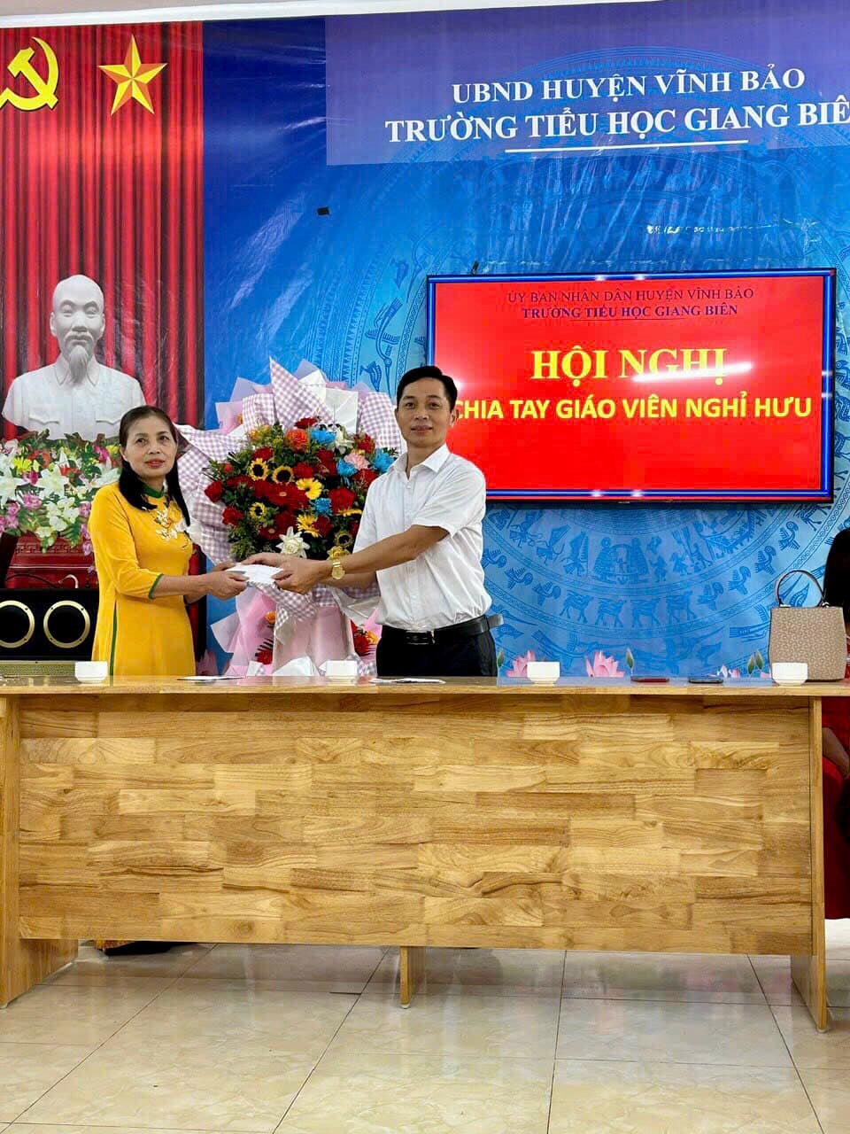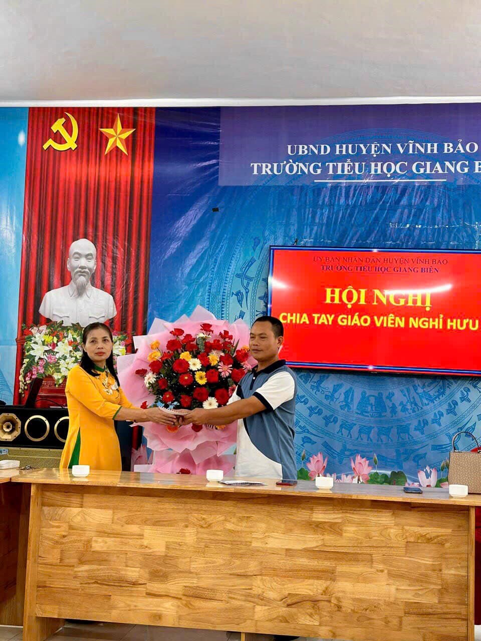 Chia tay cô giáo Vũ Thị Vóc, một cô giáo tâm huyết. Cô luôn được phụ huynh tin tưởng, học sinh kính trọng và đồng nghiệp yêu quý! Cô đã hoàn thành xuất sắc nhiệm vụ của mình. Chúc cô về nghỉ hưu tại địa phương luôn mạnh khỏe và hạnh phúc! Trân trọng cảm ơn cô đã cống hiến cho sự nghiệp giáo dục!
