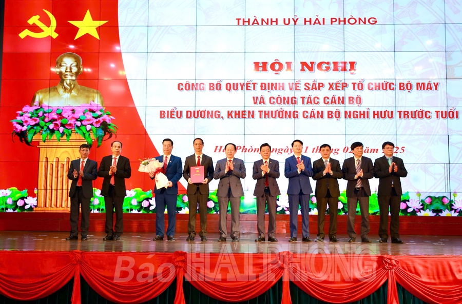 🔸 Đồng chí Lê Tiến Châu, Ủy viên Trung ương Đảng, Bí thư Thành ủy, Trưởng Đoàn đại biểu Quốc hội thành phố Hải Phòng dự và chủ trì hội nghị. Cùng dự có các đồng chí: Nguyễn Văn Tùng, Phó bí thư Thành ủy, Chủ tịch UBND thành phố; Đỗ Mạnh Hiến, Phó bí thư Thường trực Thành ủy; các Ủy viên Ban Thường vụ Thành ủy; Ủy viên Thành ủy; cán bộ diện Ban Thường vụ Thành ủy quản lý nghỉ hưu trước tuổi; lãnh đạo các ban, sở, ngành, địa phương, tổ chức chính trị-xã hội, Đảng ủy khối các cơ quan thành phố, Khối doanh nghiệp thành phố, các cơ quan, đơn vị thuộc diện hợp nhất, sáp nhập hoặc có cán bộ được điều động, bổ nhiệm; bí thư, phó bí thư các đảng bộ trực thuộc Thành ủy…