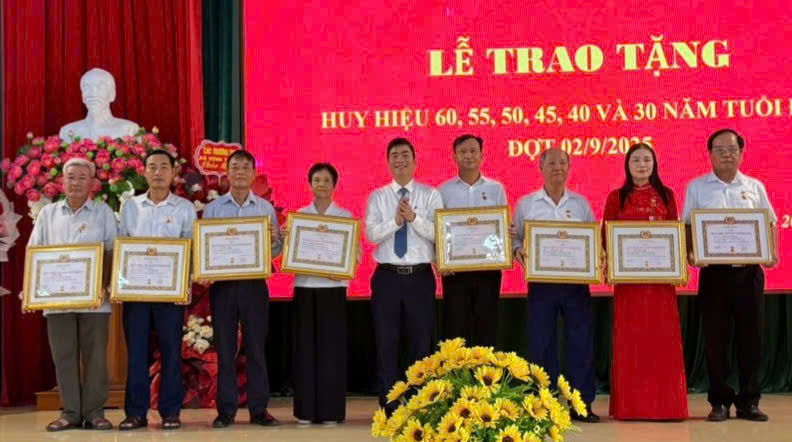 Nhân dịp này, Đảng bộ xã Vĩnh Thuận tổ chức Lễ trao tặng Huy hiệu 60 năm, 55 năm, 50 năm, 45 năm, 40 năm và 30 năm tuổi Đảng đợt 2/9/2025 cho 20 đảng viên của Đảng bộ.