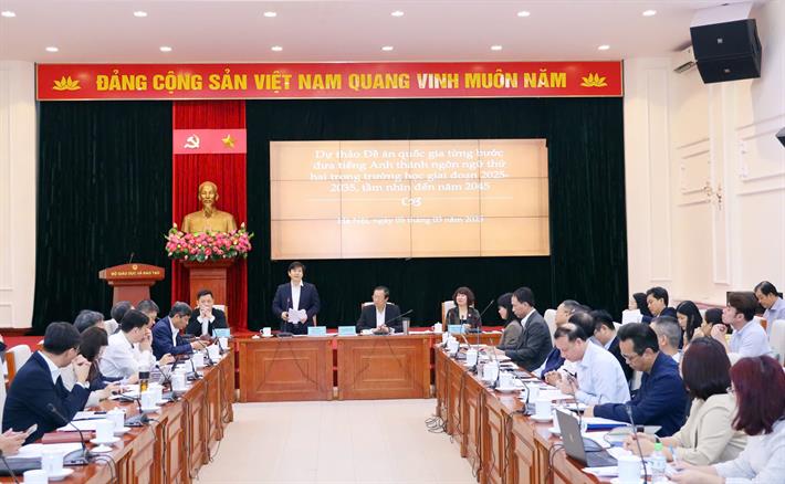 Phát biểu mở đầu hội thảo, Thứ trưởng Phạm Ngọc Thưởng nhận định: Việc triển khai xây dựng Đề án Từng bước đưa tiếng Anh thành ngôn ngữ thứ hai trong trường học là một tin vui, là cơ hội của ngành giáo dục, với người dạy và học, nói ngoại ngữ là công cụ hết sức quan trọng để hội nhập sâu, rộng với thế giới, đặc biệt là tiếng Anh.