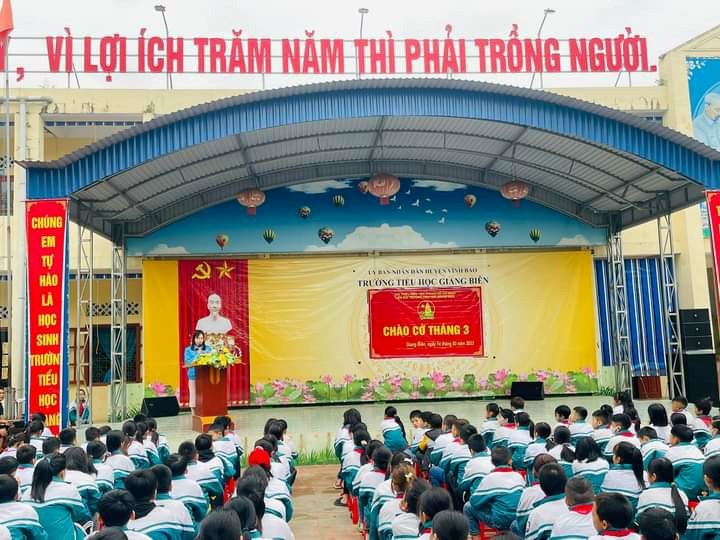 Thực hiện công tác Đội và phong trào thiếu nhi năm học 2022-2023. Sáng ngày 14/3/2022,Liên Đội trường Tiểu học Giang Biên tổ chức Lễ chào cờ- Nghi thức Đội năm học 2022-2023. Nhằm đánh giá kết quả học tập và rèn luyện của các em đội viên nhi đồng trong toàn Liên đội. Để các em tích cực tham gia các hoạt động của Liên đội. Không ngừng đổi mới về nội dung, hình thức hoạt động ngày càng phong phú và hấp dẫn.