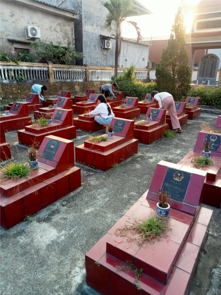 Chiến tranh đã lùi xa vào quá khứ nhưng hình ảnh Tổ quốc Việt Nam - Đất nước của “máu và hoa”, đất nước đã sản sinh ra những người con anh hùng kiên cường, bất khuất, đất nước của những anh bộ đội cụ Hồ trong hai cuộc trường chinh bảo vệ Tổ quốc vẫn luôn là ngọn đuốc sống, là hồn thiêng của sông núi. Để thể hiện lòng biết ơn sâu sắc đối với các anh hùng đã hy sinh vì tổ quốc, mang lại cuộc sống ấm no, hạnh phúc cho các em, chiểu ngày 19/12/2024 côTổng phụ trách đội và GVCN đã tổ chức cho các em học sinh lớp 4A4 tới quét dọn và thăm viếng nghĩa trang Liệt sĩ xã Giang Biên.