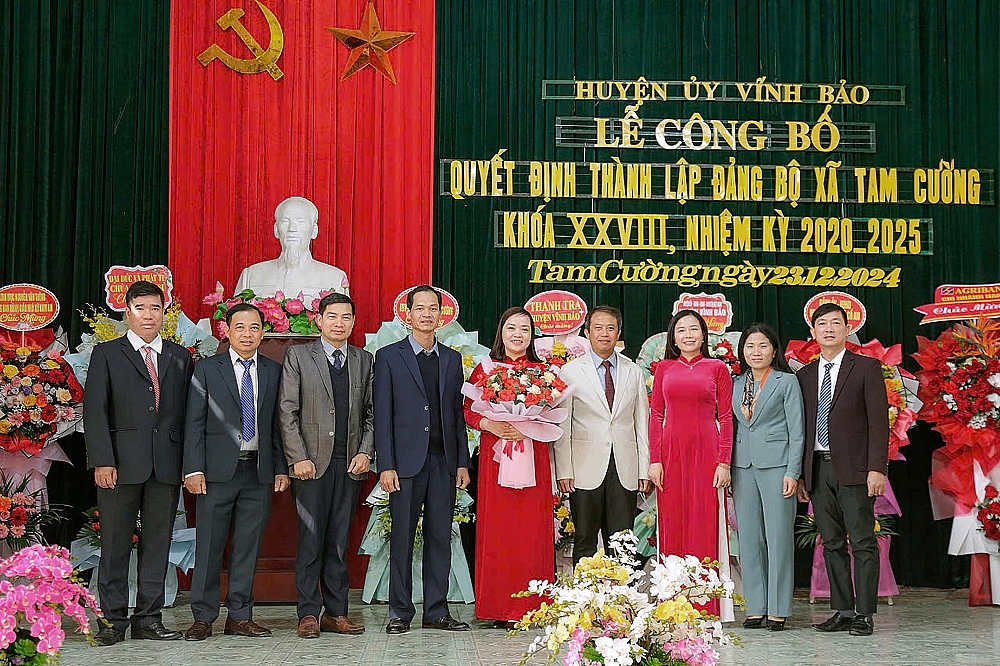 Công tác xây dựng Đảng, hệ thống chính trị, vận động nhân dân được tập trung cao chỉ đạo và có nhiều đổi mới. Năm 2024, cả hệ thống chính trị huyện tập trung cao trong công tác sáp nhập 15 xã thành 5 xã mới, nhận được sự đồng thuận cao trong Đảng bộ và nhân dân. Sáng ngày 23/12/2024, Huyện ủy tổ chức Lễ công bố Quyết định thành lập Đảng bộ các xã: Vĩnh Hưng, Vĩnh Hòa, Vĩnh Hải, Tiền Phong, Tam Cường. Ngày 01/01/2025, HĐND các xã đã tổ chức kỳ họp đầu tiên sau sáp nhập để bầu ra bộ máy chính quyền mới. Hệ thống chính trị đi vào hoạt động ổn định, đảm bảo tính liên thông, liên tục, phục vụ kịp thời người dân và doanh nghiệp.