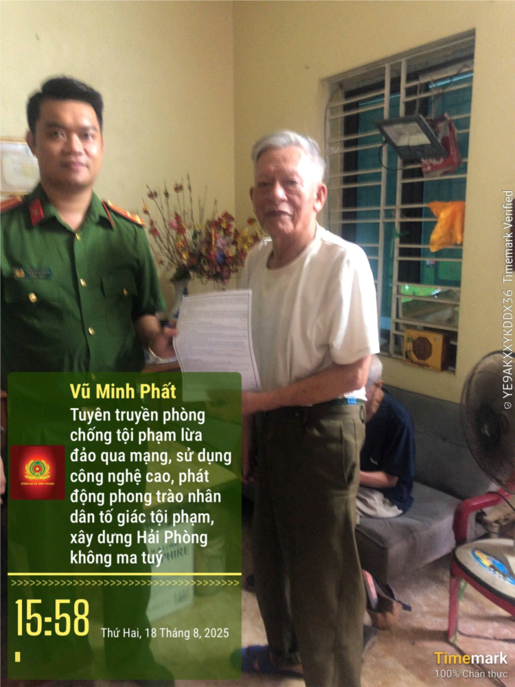 ✴️ Thời gian qua, Công an xã Vĩnh Thuận tăng cường lực lượng "đi từng ngõ, gõ cửa từng nhà" tuyên truyền pháp luật về lừa đảo qua mạng, tội phạm công nghệ cao; Tuyên truyền về nghị quyết 18 của Thành uỷ về xây dựng Hải Phòng không ma tuý và Nghị quyết của Đảng uỷ xã Vĩnh Thuận về xây dựng thôn dân cư, xã không ma tuý. Qua đó, nâng cao nhận thức của nhân dân trong phòng ngừa, đấu tranh, tố giác với các loại tội phạm, tệ nạn xã hội.
