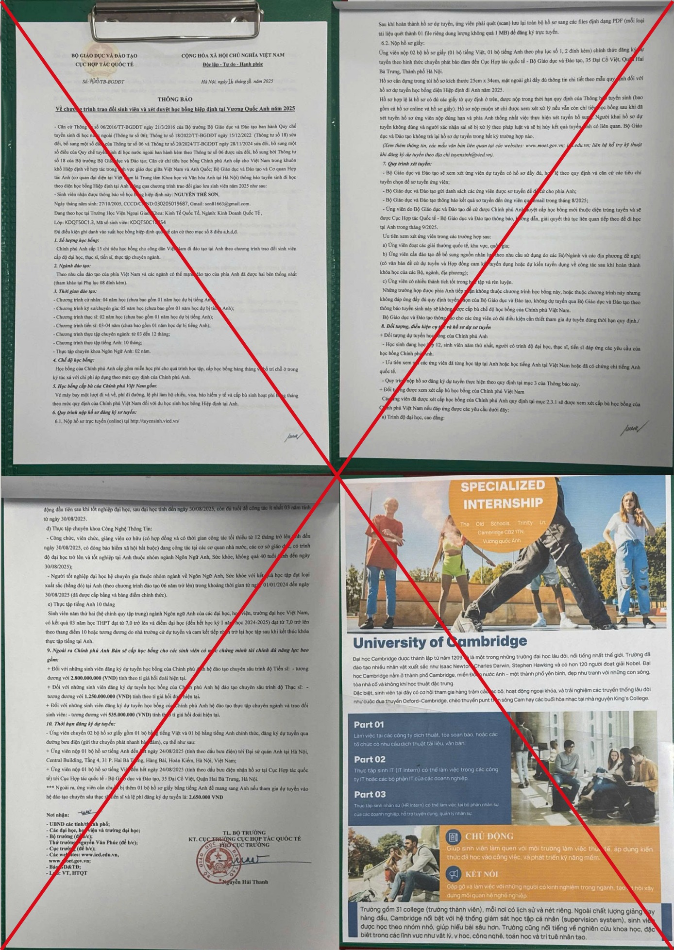 Trước đó, Bộ GD&ĐT cũng đã phát đi cảnh báo về việc giả mạo thông báo liên quan đến các chương trình học bổng tiếng Anh. Bộ khuyến nghị người dân chỉ tra cứu thông tin từ các nguồn chính thống, đặc biệt là Cổng thông tin điện tử của Bộ GD&ĐT.